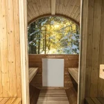 Elegant barrel and cube shapes with panoramic views that harmoniously blend with outdoor settings. -